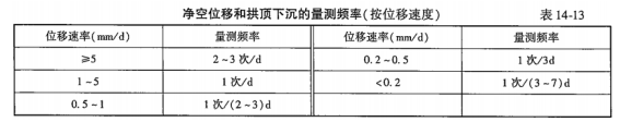 位移速率≥5mm/d时,拱顶下沉、周边位移的量测频率为(2-3)次/d