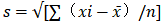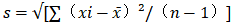 ,其中n-1是自由度。这个公式是样本标准偏差的无偏估计公式。