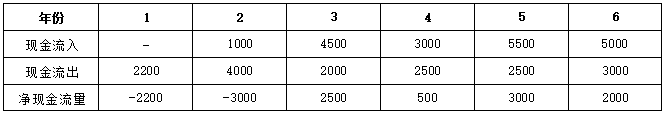 -2200/(1+8%)-3000/(1+8%)2+2500/(1+8%)3+500/(1+8%)4+3000/(1+8%)5+2000/(1+8%) 6=1045.131 万元。