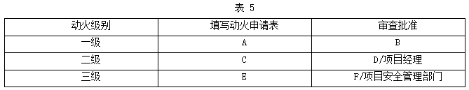 项目技术负责人就施工现场动火审批程序(见表 5)向施工管理人员进行技术交底,特别强调了动火证当日开具、当日有效。