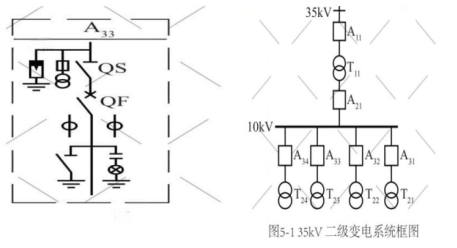某公司承接一工业园区的变配电工程(35KV变电站,10KV变电所)。进线电压为35KV,变配电系统为二级变电(图5-1)。主要设备:三相油浸式电力变压器(6300KVA-35KV/10KV),三相干式电力变压器(1250KVA-10KV/0.4KV),断路器,隔离开关,各类电器及柜体等。