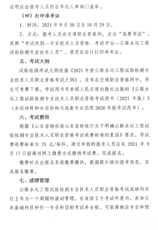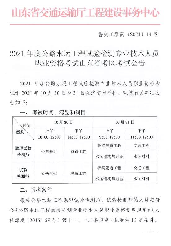 近日,山东省正式发布【2021年度公路水运试验检测考试