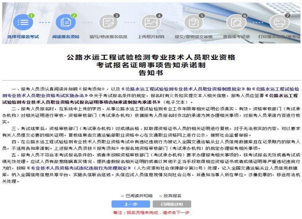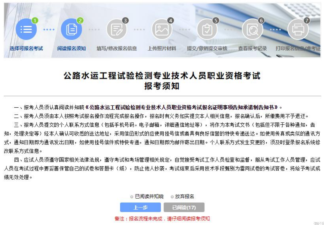 1.若您已取得 2017 年及以后公路水运工程试验检测师级别或助 理试验检测师级别证书在选择报考科目时,已通过的科目不显示,免 考科目中默认勾选“是”并且免考公共基础科目。