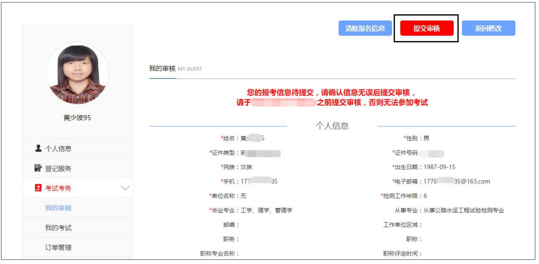 点击“提交审核”考生报考信息提交至报考省份进行审核。