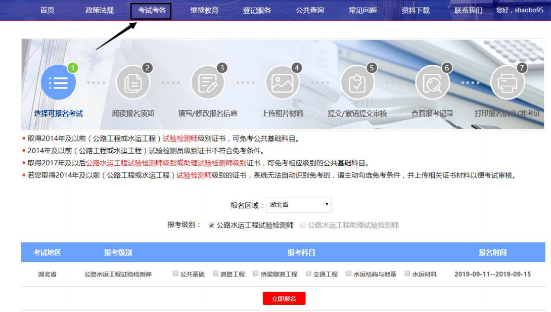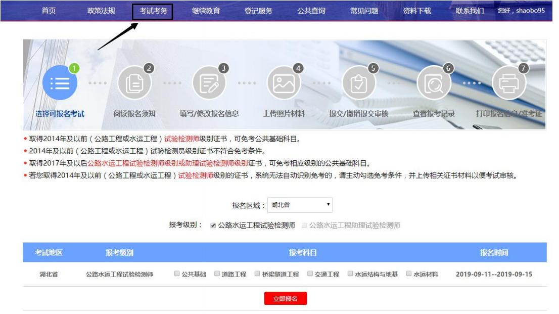 打开网站登录链接,点击考试考务,如下图所示: