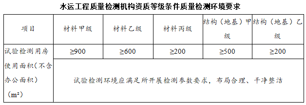 根据《公路水运工程质量检测机构资质等级条件》(交安监发(2023)140号),质量检测机构申请水运工程材料丙级和结构(地基)乙级资质,试验检测用房使用面积(不含办公面积)(m²)的要求一致。