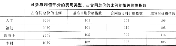 某工程随工合同约定根据价格调整公式调整合同价,已知不调值部分占合同价的比例为15%,可参与调值部分的费用类型、占合同总价的比例和相关价格指数见下表,若结算当月完成的合同额为1000万元,则调整后的合同金额为()。