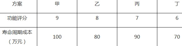 现有四个施工方案可供选择,其功能评分和寿命周期成本相关数据见下表,则根据价值工程原理应选择的最佳方案是()。