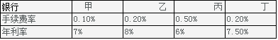 资金成本率的计算公式为:资金成本率=资金占用费/筹资总额×(1-筹资费率),甲银行的资金成本率=2000×7%×(1-25%)/[2000×(1-0.1%)]=5.26%;乙银行的资金成本率=2000×8%×(1-25%)/[2000×(1-0.2%)]=6.01%;丙银行的资金成本率=2000×6%×(1-25%)/[2000×(1-0.5%)]=4.52%;丁银行的资金成本率=2000×7.5%×(1-25%)/[2000×(1-0.2%)]=5.64%。企业应选择资金成本最低的丙银行贷款。