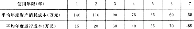 某设备在不同使用年限(1至7年)时的平均年度资产消耗成本和平均年度运行成本如下表所示,则该设备在静态模式下的经济寿命为()年。