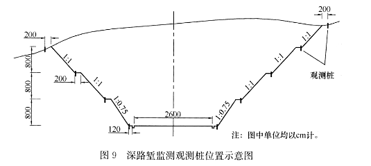 路堑开挖过程中,为监测深路堑边坡变形和施工安全,施工单位埋设了观测桩。在挖至路基设计标高后,施工单位开始由下往上进行防护工程施工。在第一级边坡施工中,边坡局部凹陷。