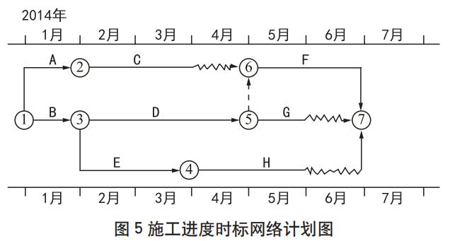 某公路工程于2013年6月签订合同并开始施工,合同工期为30个月。2014年1月开始桥梁上部结构施工。承包人按合同工期要求编制了桥梁上部结构混凝土工程施工进度时标网络计划(见下图),该部分各项工作均按最早开始时间安排,且等速施工,监理工程师批准了该计划。