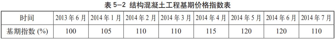 合同约定,桥梁上结构混凝土工程综合单价为1000元/m3,按月结算。结算价按项目所在地结构混凝土工程价格指数进行调整,项目实施期间各月结构混凝土工程基期价格指数见下表(2013年6月为基期)。