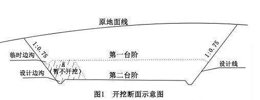 某施工单位承接了某丘陵区一级公路路基施工任务。施工单位编制了路基施工组织设计,并对施工组织设计进行了优化,重点优化了施工方案,主要包括施工方法的优化、施工作业组织形式的优化、施工劳动组织的优化。技术人员根据路基横断面计算出土石方的“断面方数”,经复核后,进行土石方纵向调配。调配时考虑到技术经济条件,尽量在经济合理的范围内移挖作填,使路堑和路堤中土石方数量达到平衡,减少了弃方与惜方。全标段路基挖方土质为普通土,平均运距50m的土方有150000m3,平均运距200m的土方有100000m3,平均运距3000m的土方有80000m3K5+630~K5+810的平均挖方深度7m左右,施工单位采用的某一开挖断面示意如图1,要求上下错台同时掘进。