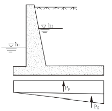 右图为挡土墙底板扬压力为示意图,图中的Ps是指()。