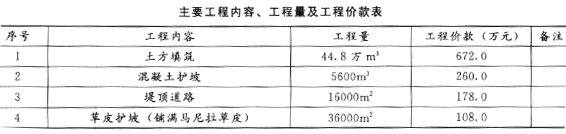 某堤防除险加固工程,堤防级别为1级。该工程为地方项目,项目法人由某省某市水行政主管部门组建,质量监督机构为该市水利工程质量监督站。该项目中一段堤防工程为一新建施工合同段,全长2.0km,为黏性土料均质堤,由某施工单位承建。该合同签约合同价为1460万元,主要工程内容、工程量及工程价款如下表所示。