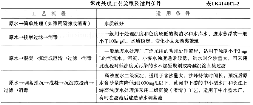当水质条件为水库水,悬浮物含量小于100mg/L时应采用的水处理工艺是()。