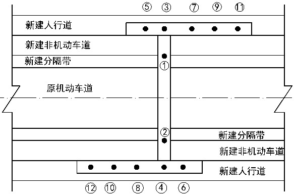 某施工单位承建城镇道路改扩建工程,全长2km,工程项目主要包括:(1)原机动车道的旧水泥混凝土路面加铺沥青混凝土面层:(2)原机动车道两侧加宽、新建非机动车道和人行道;(3)新建人行天桥一座,人行天桥桩基共设计12根,为人工挖孔灌注桩,改扩建道路平面布置如图1所示,灌注桩的桩径,桩长见表1—1。