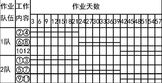 施工过程中发生如下事件:事件一:项目部将原已获批的施工组织设计中的施工部署:非机动车道(双侧)→人行道(双侧)→挖孔桩→原机动车道加铺,改为:挖孔桩→非机动车道(双侧)→人行道(双侧)→原机动车道加铺。事件二:项目部编制了人工挖孔桩专项施工方案,经施工单位总工程师审批后上报总监理工程师申请开工,被总监理工程师退回。事件三:专项施工方案中,钢筋混凝土护壁技术要求有:井圈中心线与设计轴线的偏差不得大于20mm,上下节护壁搭接长度不小于50mm,模板拆除应在混凝土强度大于2.5MPa后进行。事件四:旧水泥混凝土路面加铺前,项目部进行了外观调查,并采用探地雷达对道板下状况进行扫描探测,将旧水泥混凝土道板的现状分为三种状态;A为基本完好;B为道板面上存在接缝和裂缝;C为局部道板底脱空,道板局部断裂或碎裂;事件五:项目部按两个施工队同时进行人工挖孔桩施工,计划显示挖孔桩施工需57天完工,施工进度计划见表1-2,为加快工程进度,项目经理决定将9、10、11、12号桩安排第三个施工队进场施工,三队同时作业。