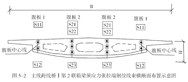 (3)确定了预应力钢绞线张拉顺序的原则和各钢绞线束的张拉顺序;