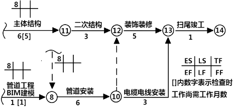 在工程开工前,施工单位按照收集依据、划分施工过程(段)计算劳动量、优化并绘制正式进度计划图等步骤编制了施工进度计划,并通过了总监理工程师的审查与确认,项目部在开工后进行了进度检查,发现施工进度拖延,其部分检查结果如图2所示。