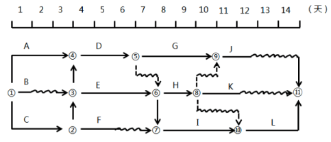 某双代号时标网络计划如下图,工作F,工作H的最迟完成时间分别为()。