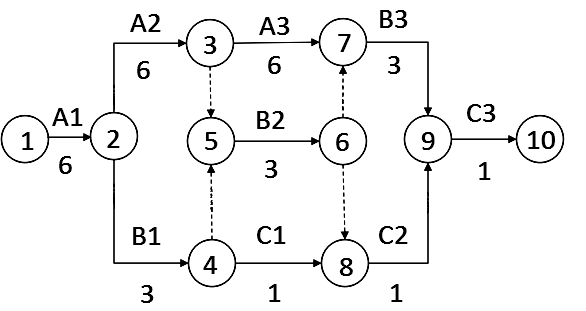 某双代号网络计划如下图所示(时间单位:天),其计算工期是()天。