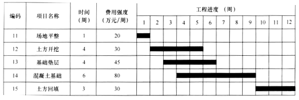 从横道图可以看出,第五周施工计划要做三项工作:土方开挖、基础垫层和混凝土基础,相应的费用强度为30万元/周、45万元/周和80万元/周,即这三项工作每周的计划成本分别为30万元、45万元和80万元,因此,第五周的施工成本计划值为30+45+80=155万元。因此,正确选项是D。