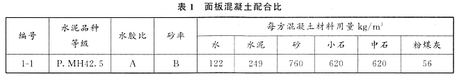 事件二:施工单位在面板混凝土施工前,提供了面板混凝土配合比,见表1。