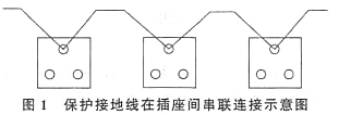 在设备、材料到达施工现场后,B公司项目部依据施工图纸和施工方案,对灯具、开关及插座的安装进行技术交底,灯具类型及安装高度见表1-2。在施工质量的检查中,监理工程师发现单项三孔插座的保护接地线(PE线)在插座间串联连接(见图1),相线与中性线利用插座本体的接线端子转接供电。监理工程师要求返工,使用连接器对插座的保护接地线、相线和中性线进行分路连接,施工人员按要求整改后通过试验。