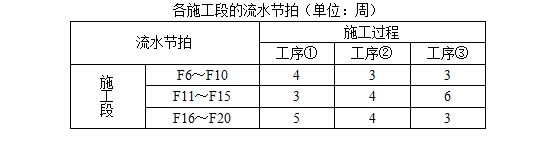 案例25【背景资料】:装修施工单位将地上标准层(F6~F20)划分为三个施工段组织流水施工,各施工段上均包含三个施工工序,其流水节拍如下表所示。【问题】参照下图图示,在答题卡上相应位置绘制标准层装修的流水施工横道图。