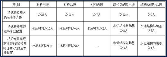 水运工程材料乙级资质要求:持水运材料检测师的高级工程师≥2人。