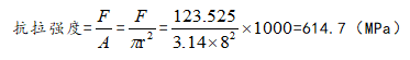 4) 已知钢筋实测最大力值为123.525kN,则抗拉强度(数据修约为整数)为()。