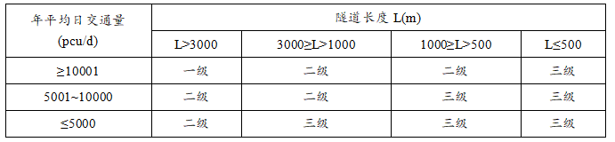 二级及二级以下公路隧道养护等级分级表: