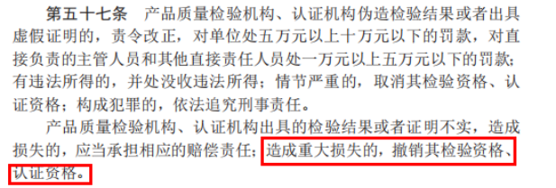 根据《中华人民共和国产品质量法》,产品质量检验机构出具不实检验报告造成重大损失的,应当( )。