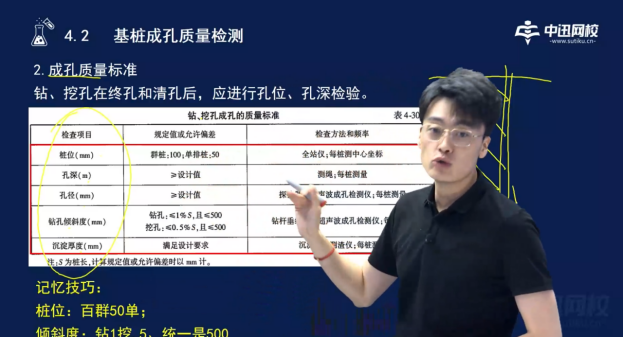 7.某钻孔灌注桩在成孔质量检测时发现桩身中、下部孔径远大于设计值,出现明显扩径的桩。该桩不宜作为抗拔试验桩为设计提供依据,是因为该钻孔灌注桩的孔径不满足《公路工程质量检验评定标准第一册土建工程》(JTGF80/1-2017)要求。