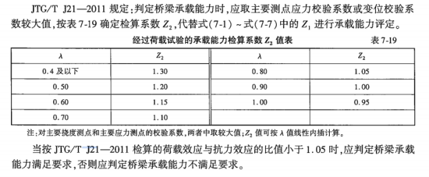 18.根据《公路桥梁承载能力检测评定规程)(JTG/T121-2011),某在用公路桥梁经过荷载试验确定承载能力检算系数Z2代替Z1进行检算,检算的荷载效应与抗力效应的比值为1.04,应判定该桥承载能力满足要求。