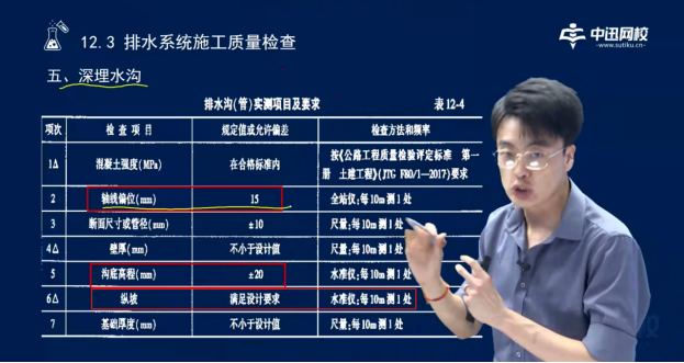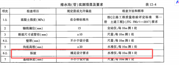 中深埋水沟纵坡施工质量的检测频率为每20m测1处