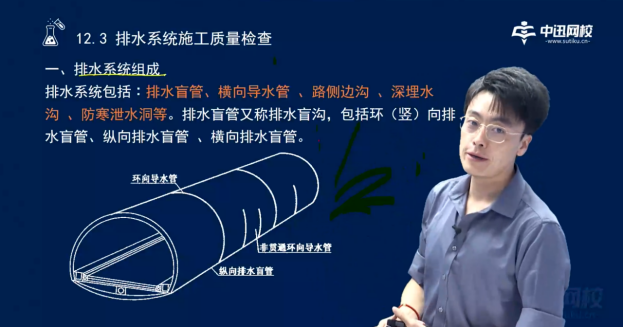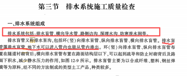 排水系统包括:排水盲管、横向导水管、路侧边沟、深埋水沟,防寒泄水洞等