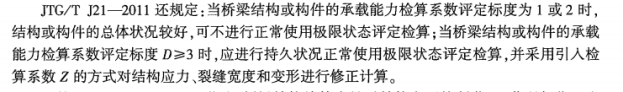 该桥的承载能力按算系数评定标度D≥3,应进行正常使用极限状况评定计算