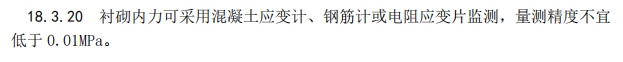 衬砌内力可采用混凝土应变计、钢筋计或电阻应变片监测,量测精度不宜低于0.1MPa