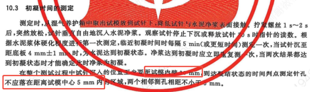 22)关于到达初凝状态的时间判点,测定针孔位置满足要求的是()。