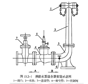 工程开工前,项目技术负责人组织技术人员编制了施工方案并向作业人员做了技术交底,为提高交底质量,准备了大量的细部节点施工图,其中图15.2-1为消防水泵接合器安装示意图。