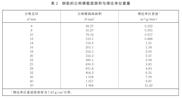 GB 1499.2-2024《钢筋混凝土用钢 第2部分热轧带肋钢筋》表2